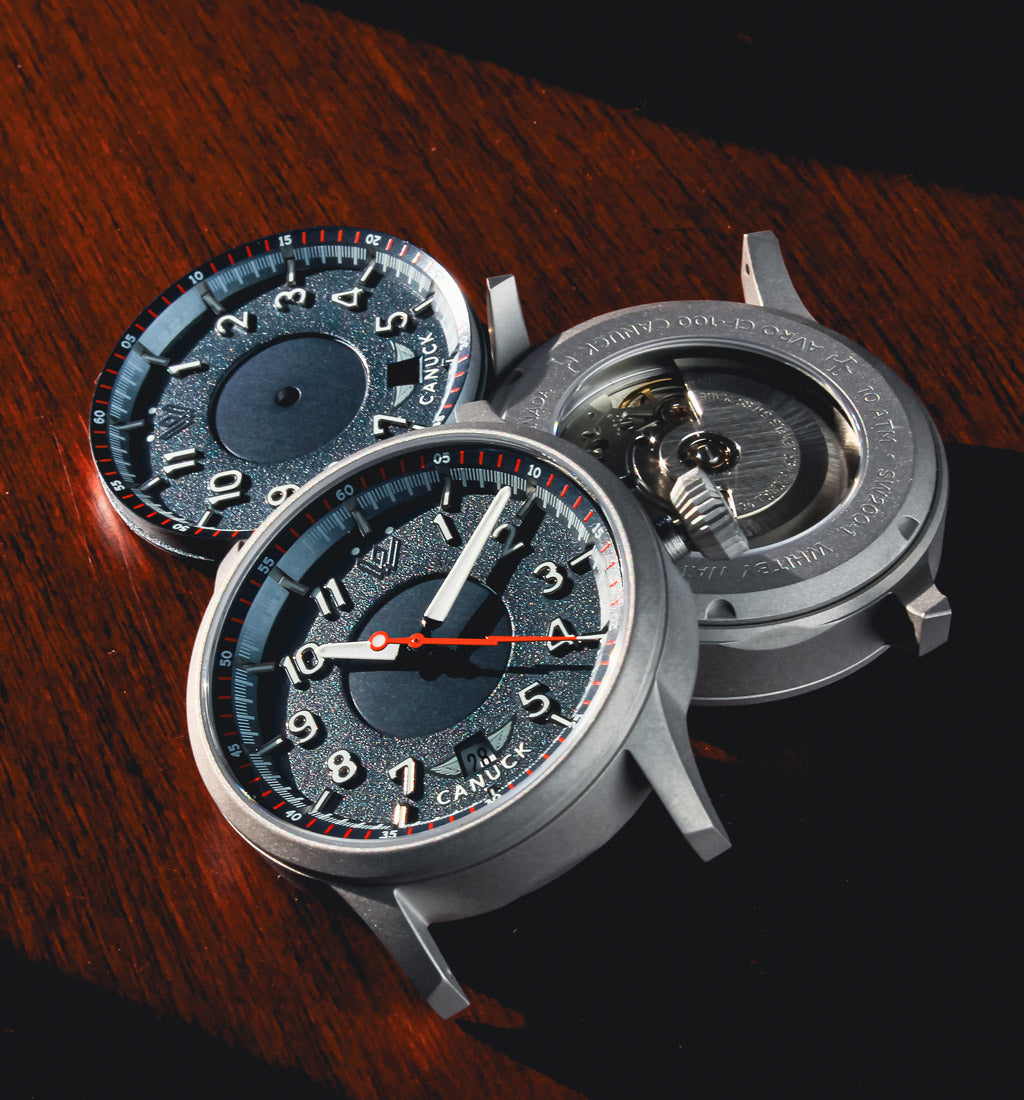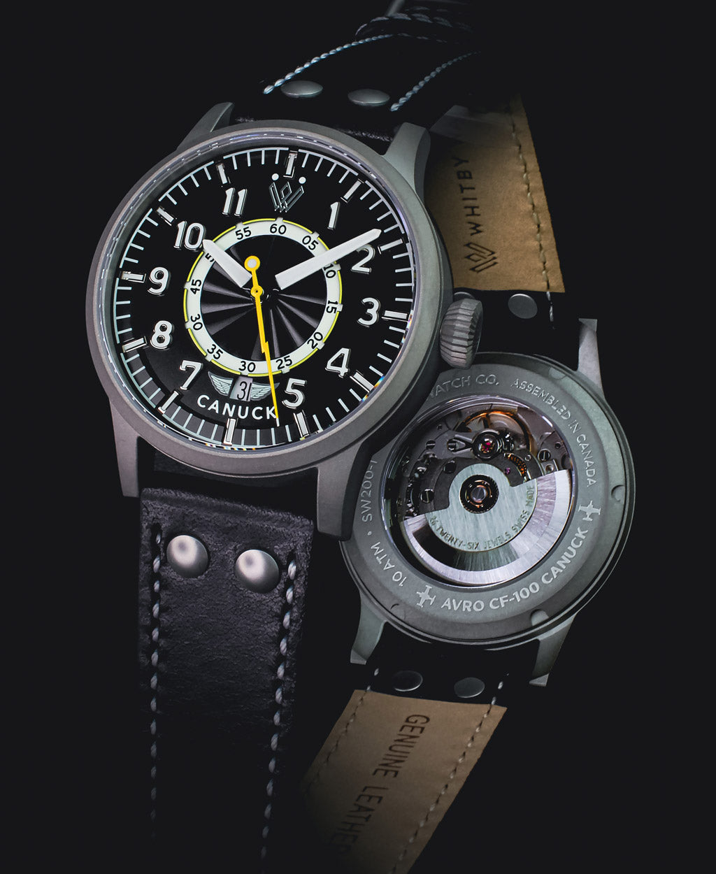 Du prototype de l'éclair au logo d'Avro Canada, en passant par le nez de "Clunk" qui abritait un système radar complexe, la Canuck Pilot Watch combine certains des meilleurs aspects de l'image visuelle de l'avion.